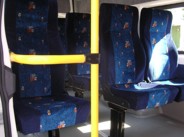 Сидения: мягкие с высокой спинкой и подголовником в антивандальном исполнении, велюровая обивка .